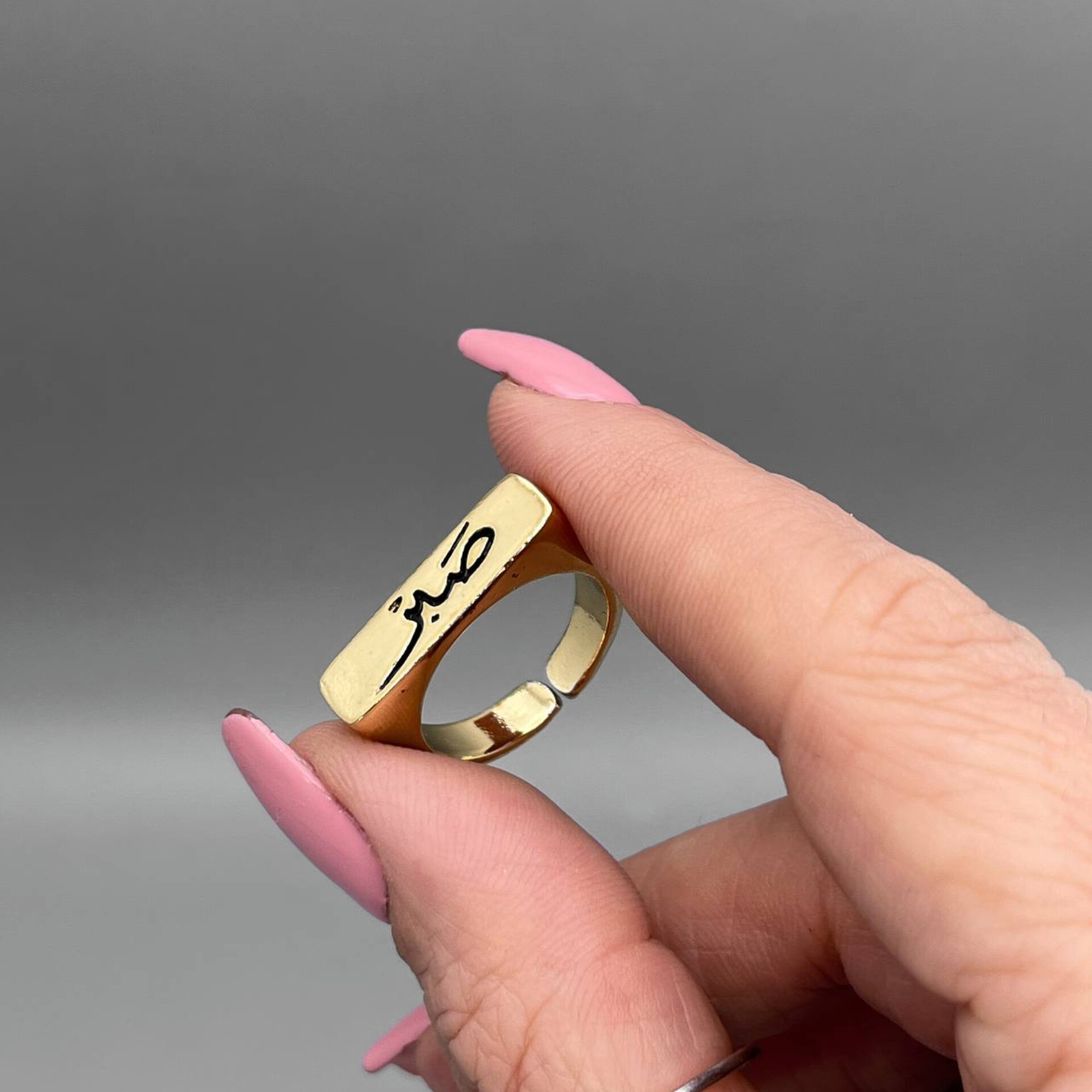 خاتم: انگشتری که روی آن نوشته یا نقش خاصی (مثل نام خدا، دعا یا آیه) حک شده است.