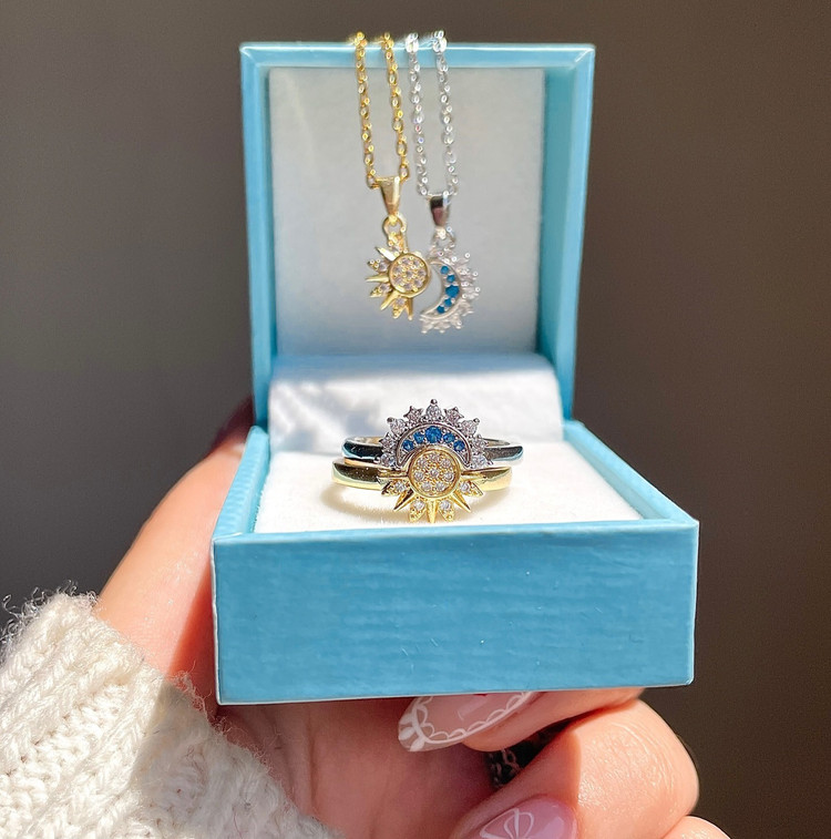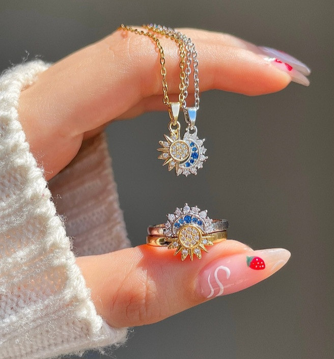 • نگین ها مخراج شده و ریزش ندارن • سایز انگشتر ها فری سایزه و از پشت قابل تنظیمه • زنجیر گردنبند استیل رنگ ثابت ، پلاک آبکاری 🌙